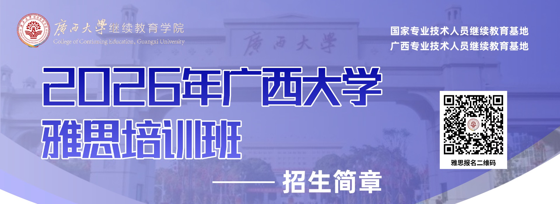 一、项目介绍广西大学雅思培训班是广西大学继续教育学院为有意赴国(境)外留学的学员提供的语言强化课程,旨在帮助广大学员提升应试能力,获得理想成绩,尽早达到国(境)外大学入学要求的语言水平,顺利衔接后续的国际课程学习。二、培训项目雅思5.5分班、6.5分班、7.0分班。三、培训内容考情分析、备考策略、实战技巧等。结合历年真题,聚焦听说读写,侧重词汇语法,全面解码考试架构、题型分值、命题规律、得分要点、佛脚招...